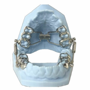Dispositif d’expansion fabriqué en combinant des bagues et des bras produits par frittage laser et un vérin conventioonnel. Peu indiqué chez les patients ayant un palais profond.